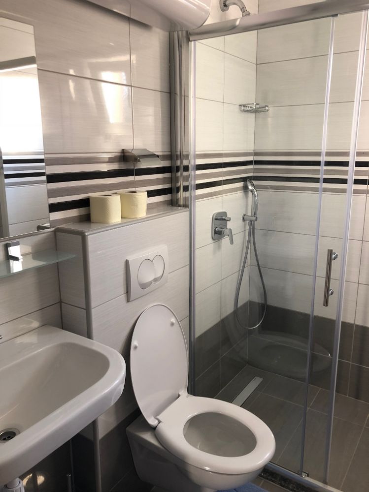 Wir bieten Unterkunft in 3 verschiedenen Appartements für 4-5 Personen und zwei Zimmer für 2-3 Personen mit Meerblick.